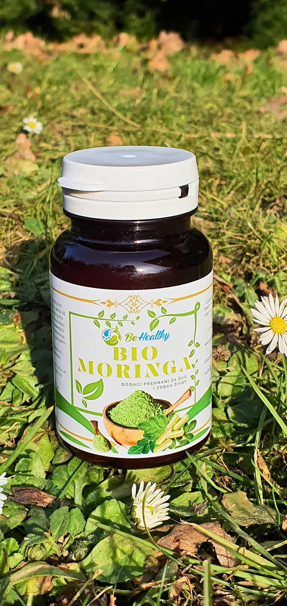 BIO Moringa u prahu dobiva se iz stabla koje se zove Moringa oleifera. Ovo drvo je prilično poznato i može se pohvaliti raznim korisnim svojstvima. Stoga se često naziva "drvo života". Moringa se obično svrstava među antioksidanse, a to su tvari povezane sa sposobnošću borbe protiv oksidativnog stresa i slobodnih radikala. Tako će brinuti o vašem zdravlju, vitalnosti i uskladiti procese u tijelu.